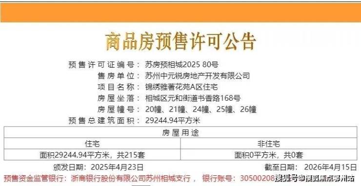 在相隔了1年多的时候, 相城区元和板块的中冶国锐锦绣雅著最新一批次房源取证了!