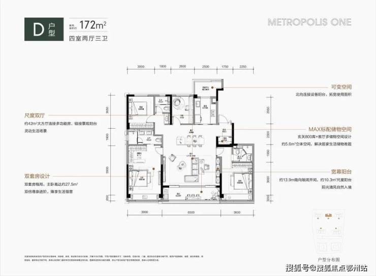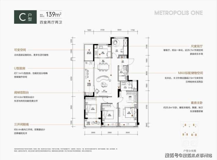 ①约42㎡尺度双厅,约13.9米南向敞阔开间