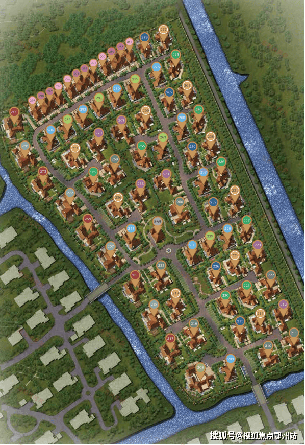 项目部分临河别墅地下室采用开放式亲水庭院,每一栋都呈现出独有的景观面。