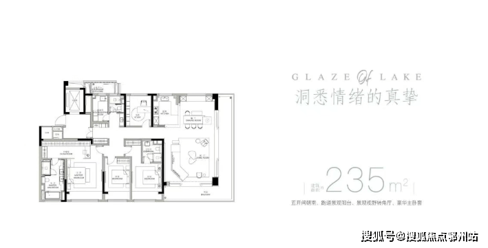 户型特色:平层产品大面宽设计,注重 “景观视野” 营造,有大尺度阳台、L 型跑道式阳台以及多个飘窗等设计。部分户型有 270 度全通透设计、约 18 米的超大转角观景阳台,还有私享 “独立电梯厅”、精工品质与一线品牌精装、精装大堂等,客餐一体化设计,全功能主卧套房等,居住舒适度高。