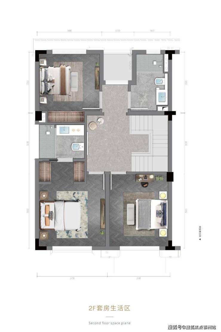 朝南双套房,均带独立卫浴间,三代同堂从容舒享;