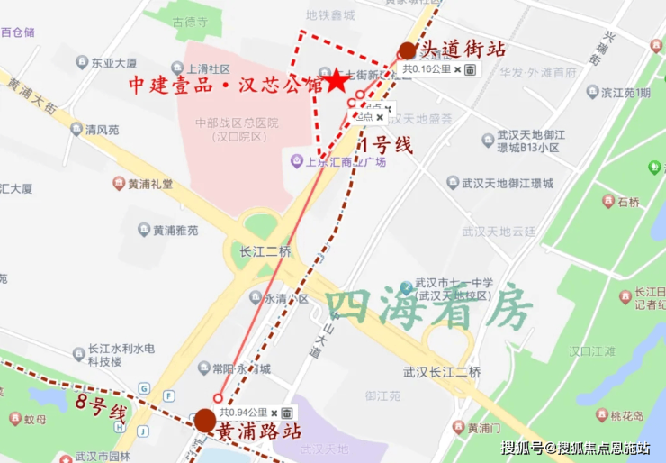 休闲娱乐上,项目西北侧约200多米就是今年网上爆火的网红打卡点古德寺,距离汉口江滩直线距离约600多米,距离解放公园直线距离约1公里,地铁1站路可以直达。
