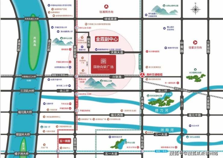国欣·向荣广场地处的开福北鹅秀版块,为金霞组团的核心组成。2020年金霞由组团级中心升级为城市副中心,规划打造为长沙第三个城市副中心,汇聚城市精粹资源,发展潜力无限。