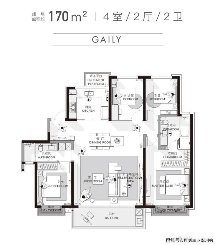 建面约170㎡四房两厅两卫:做到了宽屏大开间、全明采光、多套房配置,改善的排面和尊崇感尽显,非常适合追求该品质改善、或三代同堂的买房人。