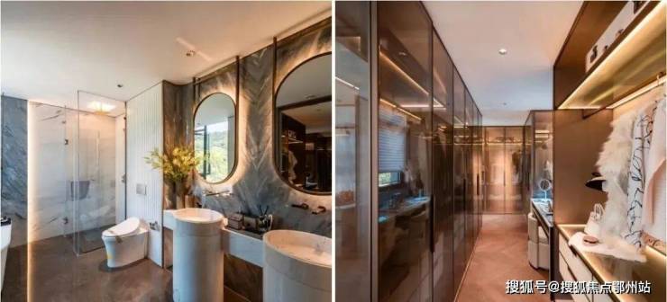 (建面约260㎡中式合院样板间主卧卫浴、衣帽间实景)