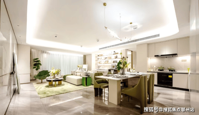 一体化客餐厅,U型厨房流畅动线,承载家庭欢聚