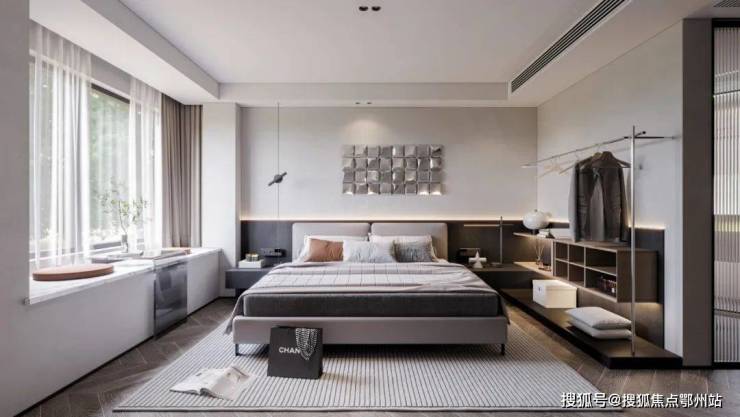主卧套房面积约19.7平 ,还带一个可 270°观景的飘窗 , 舒适度不言而喻。