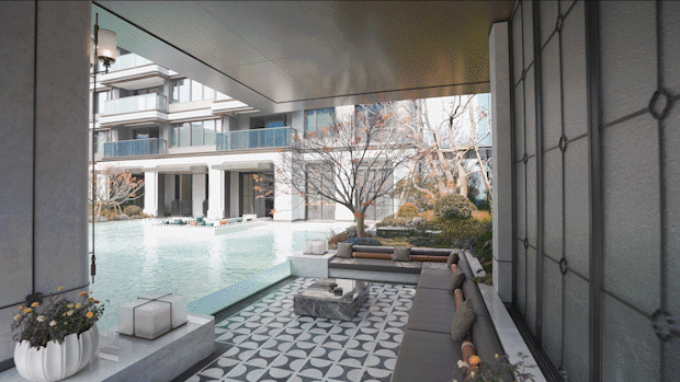 而西派海上不仅做了水景,更是颠覆传统,打造了一个极具审美力的 约450㎡马赛克无边水景 ,搭配下沉式卡座,“在家就是度假”,天天酒店式享受。