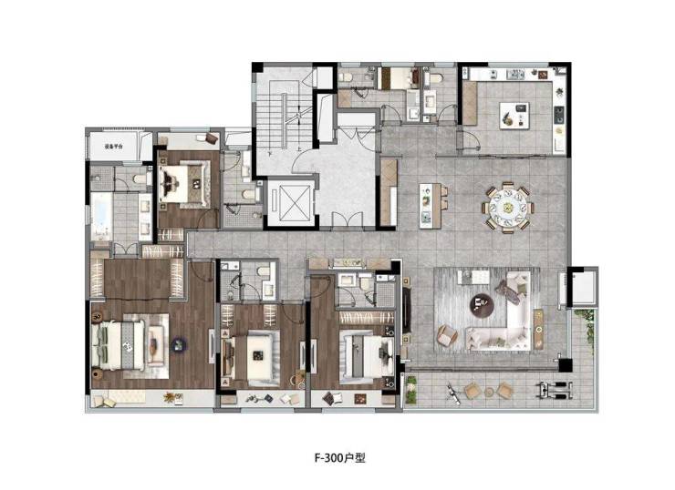 除300㎡产品一层一户外,其他产品都是 纯粹的一梯一户配置,彰显私密与专属。