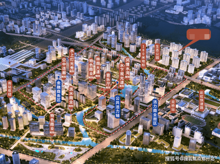 在20平方公里规划用地内,项目采用"内城外坊"空间布局模式,形成以180米地标建筑为核心的中央商务区,配套金融中心、文化艺术设施及智慧商业综合体。外延区域规划9大主题功能模块,涵盖智慧生活社区、产业创新园区及生态保育区,实现产城融合发展。