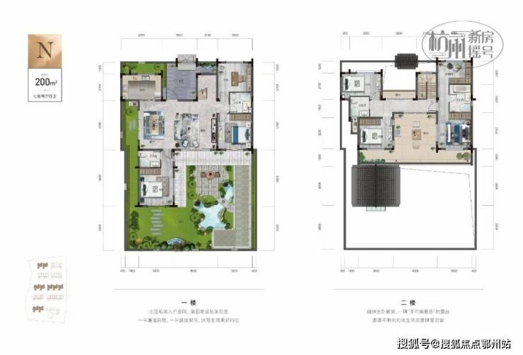 整体容积率1.1,新中式小院组团容积率低至0.41,全部为二层建筑,户户皆有花园和露台,花园面积约120-190㎡,户型舒适度与得房率俱佳。