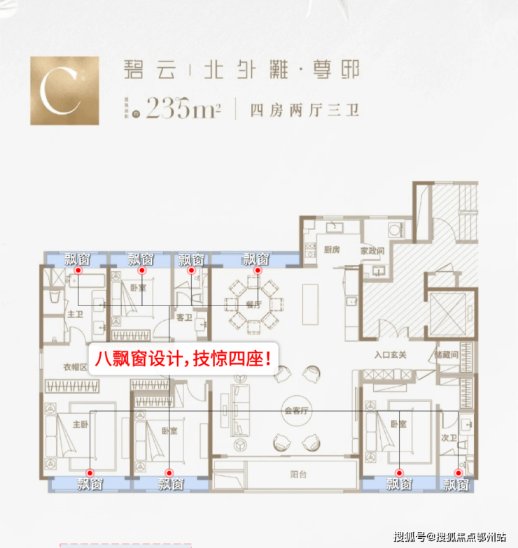仔细数数该户型有多少个飘窗?
