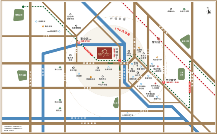 碧桂园·名门1923最大的优势是地理位置,出门就是地铁站,这在常州来说已是非常稀缺。但碧桂园在学区上的欠缺也显而易见,金鹰世界怀小+清潭的学区优势还是吸引着一大波的购房者,虽一路之隔,但碧桂园目前学区并未明确,大概率不是怀小的学区,这也是其所欠缺的部分。