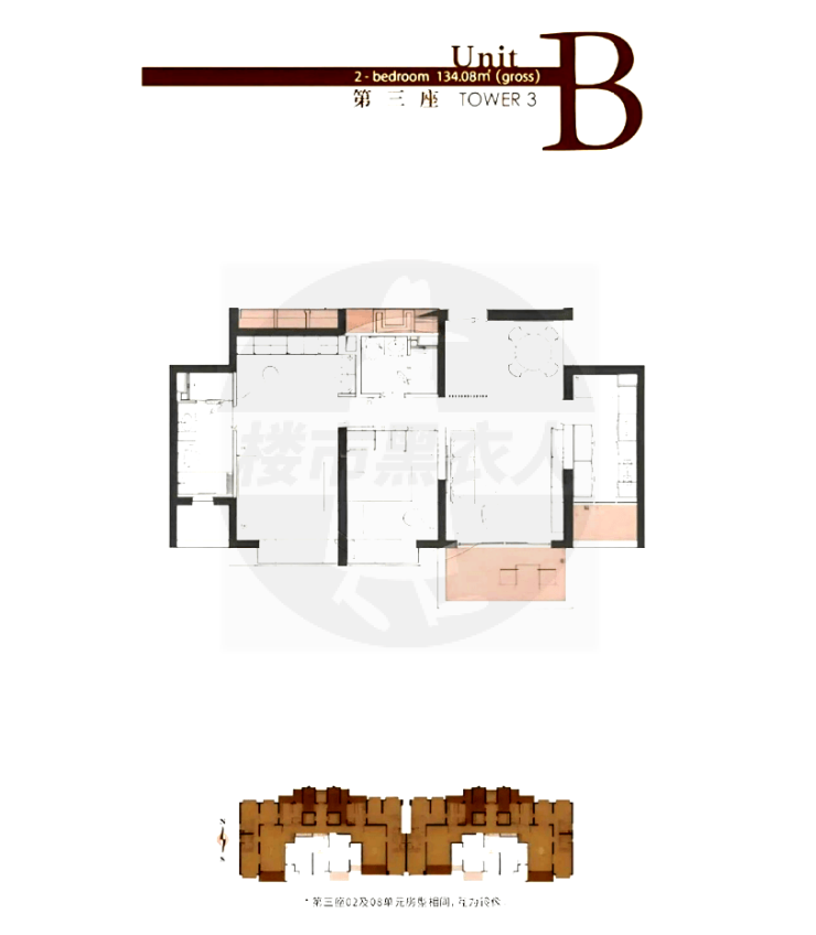 3号楼户型:134㎡2房,184㎡/200㎡3房;