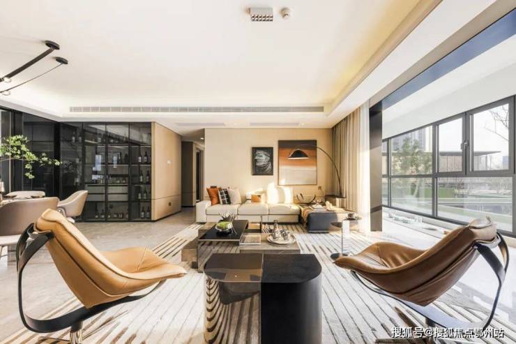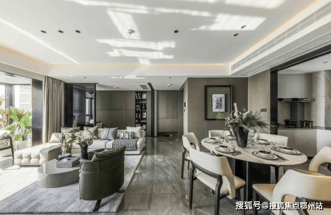 进入样板间,整个空间感扑面而来。南向四开间,约18m超大面宽,使用率最高的客厅、主卧、次卧都在南面,可以说是真正做到了阳光平权。