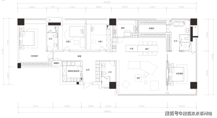 【户型面积】 265-1100㎡一线江景大平层