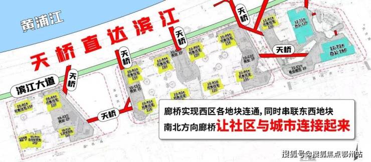 同时南北方向的5条廊桥,让业主不用过马路就能通达黄浦江畔滨江步道,实现地块内外联动。