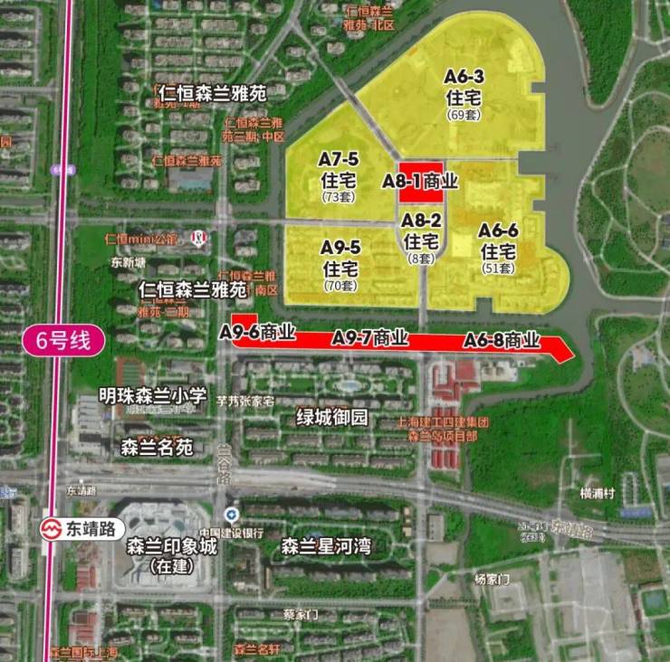 项目由外高桥集团开发建设,一共9幅地块,其中5幅住宅地块和4幅商业地块: