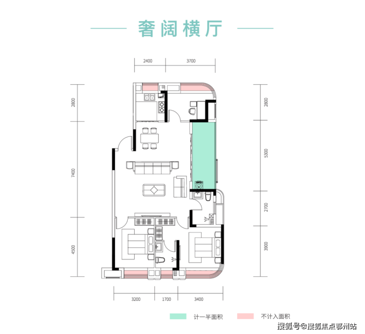 •约5.3米阔尺横厅,步入观景阳台,尊荣尽显;