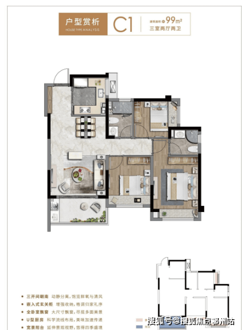 全景楼王,极目视野,耀世敬献!高层产品全精装交付。户型有73㎡精致两房、85㎡全能三房、99㎡舒适三房。小户型,低总价。