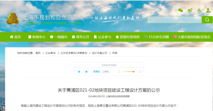 日前,上海市规划和自然资源局官网公示了黄浦区021-02地块项目建设工程设计方案。