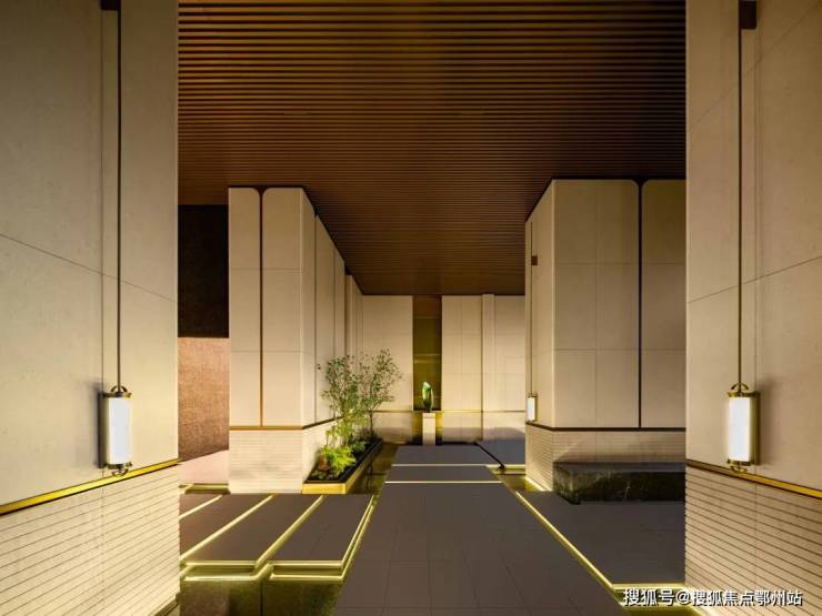 十字中轴酒廊玄关,仪式感中透着峯层人居生活典范,其宽敞布局如宏大画卷舒展,视野无拘。