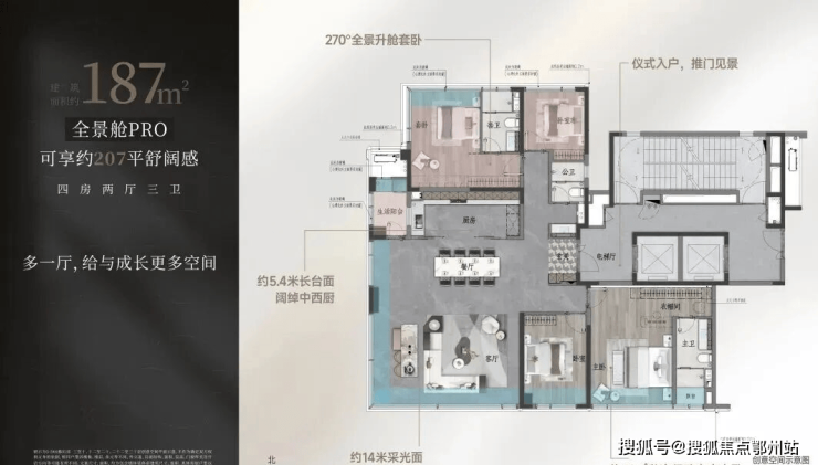 【建面约187㎡端厅户型图】建面约187㎡可享207㎡舒阔感