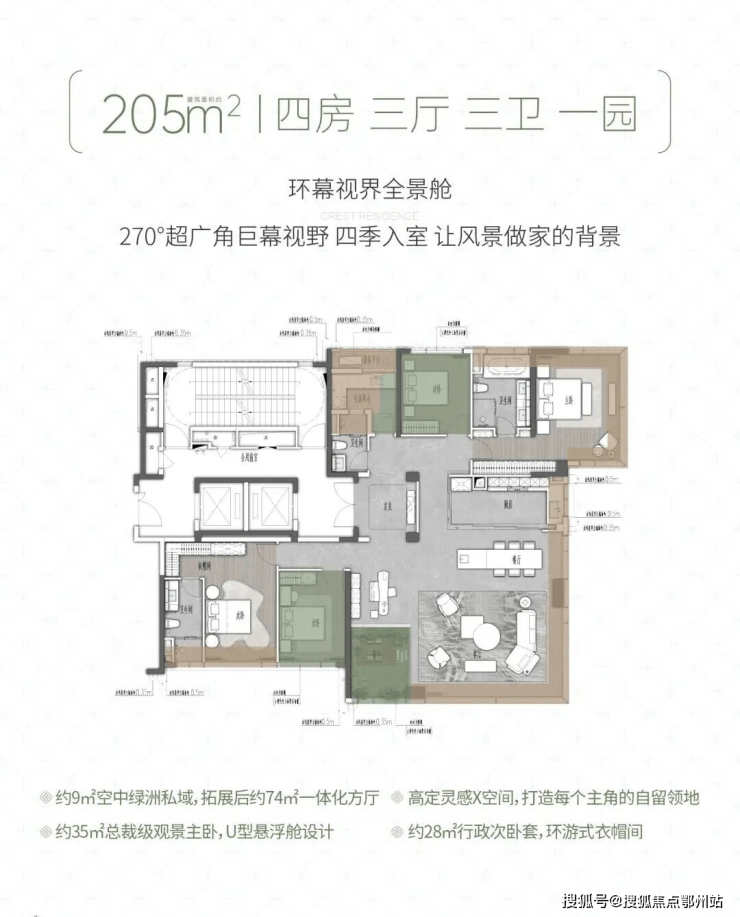 主卧开间6m,休息区3.9m采光面,约32㎡行政主卧套;
