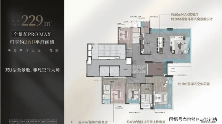 【建面约229㎡全景舱户型图】建面约229㎡可享260㎡空间感