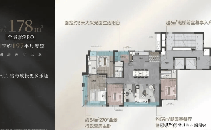 【建面约178㎡南厅户型图】建面约178㎡可享197㎡尺度感