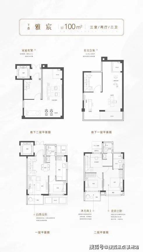 建面约100㎡玲珑叠墅,三房两厅两卫,卧室均朝南设计,精致花园,上下层动静分区,两层南向采光,打造通透的生活格局。