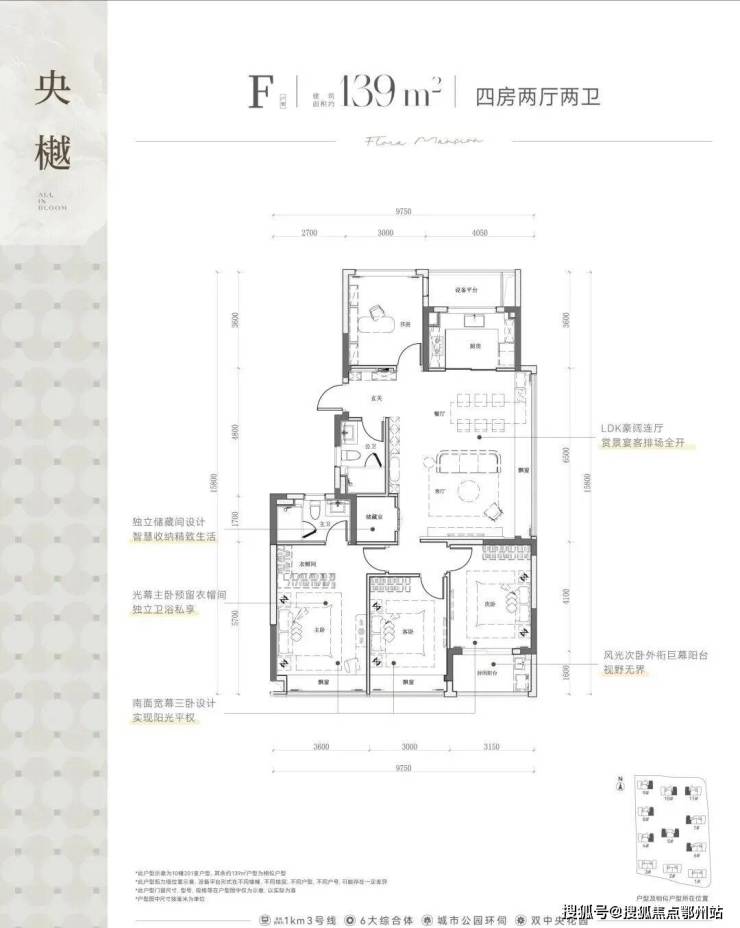 建面约 139㎡的四房两厅两卫 户型,则以它的南向三卧室:双飘窗+封闭阳台设计脱颖而出。整体南北通透设计,加上主卧衣帽间的贴心设置,为家庭生活提供了更多的空间选择和功能性需求。