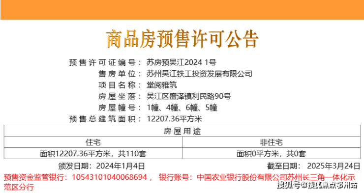 2024年,苏州楼市新房市场的第一张预售证来了!