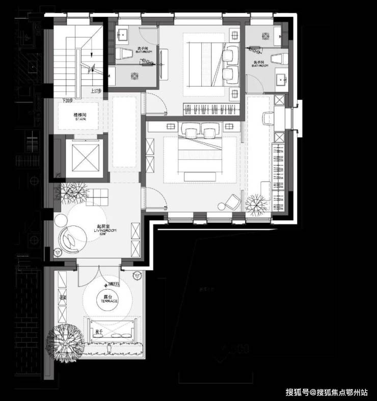 • 主卧套房露台与花池阳台,南北通透,让阳光环绕主角的“光环”
