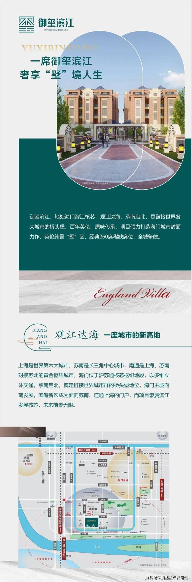 御玺滨江雄踞海门南,滨江芯,整体规划为260席低密英伦纯叠“墅”区,容积率仅1.01,五大主题分区:伊顿小镇、爱丁堡、唐宁街、温莎公馆、白金汉,