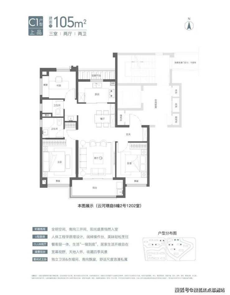 建面约105㎡3房2卫有宽厅和竖厅两种风格,其中宽厅户型好评度颇高。