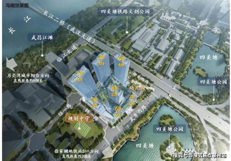 「一江一湖五园,武昌滨江生态绿核」项目位于长江畔,背靠四美塘,有月亮湾城市阳台、四美塘公园、四美塘铁路文创公园、武昌江滩公园、新中央公园(规划)等五园环绕,人文生态体系景色宜人,天然城市氧吧,生态宜居。