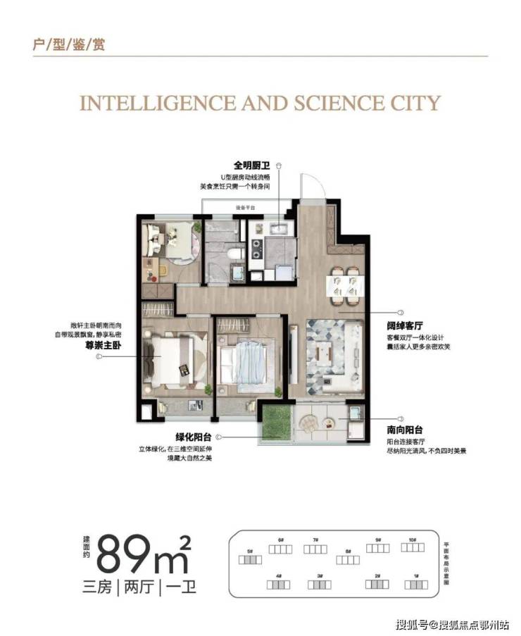 以建面为100m²户型为例,大开间短进深,结合南向三面宽,充分拉开采光面,畅享清风对流;餐客双厅一体化设计,为一家人的互动留足空间,聚餐、观影、休闲、娱乐样样全能;套房式主卧设计,独立卫浴、衣帽间,让生活的私密与尊崇兼而有之。