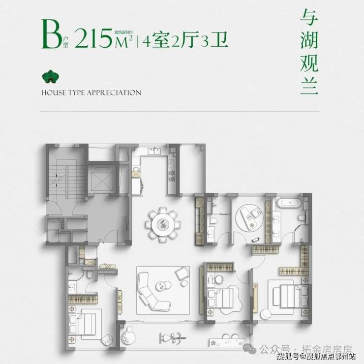 220 - 350㎡大平层,采用LDKB - X一体化布局,6米南向面宽,客厅占比超50%,搭配270°转角飘窗,“超级家庭中心”实至名归!