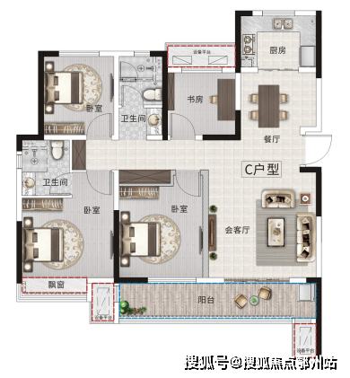 主卧独立的衣帽间、宽敞便捷的卫生间、宽阔视野的飘窗,展现多元色彩,演绎生活更多精彩的可能性。