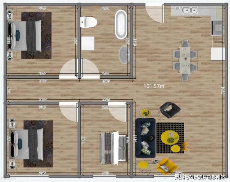 面积约81~105㎡2-3房