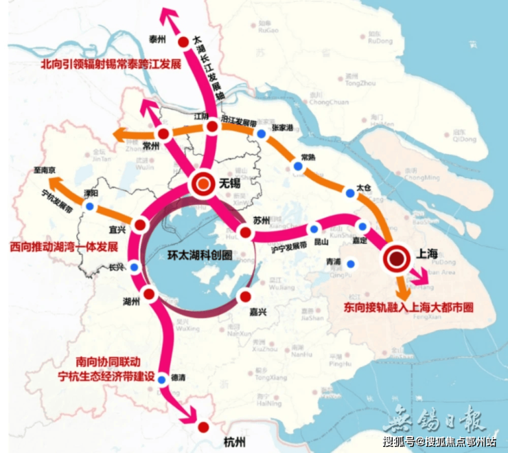 无锡作为长三角几何中心,向东融入上海大都市圈,向西直面太湖湾科创带。随着长三角一体化上升为国家战略,联动周边的环太湖城市群,在互联互通共建共享中全面打造“国际湾区”,见证这片土地的澎湃雄心。无锡“太湖湾科创带”规划“一核三湾,一城十园”,打造国内一流、具有国际影响力的科技创新高地。