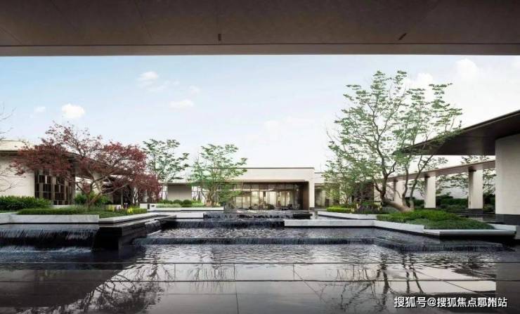 · 四重隐境水院:风雅会客厅出来经过风雨连廊区连接的就是项目售楼处,经过风雨连廊区的时候会看到项目打造的 约650平米纯净自然的水域界面,
