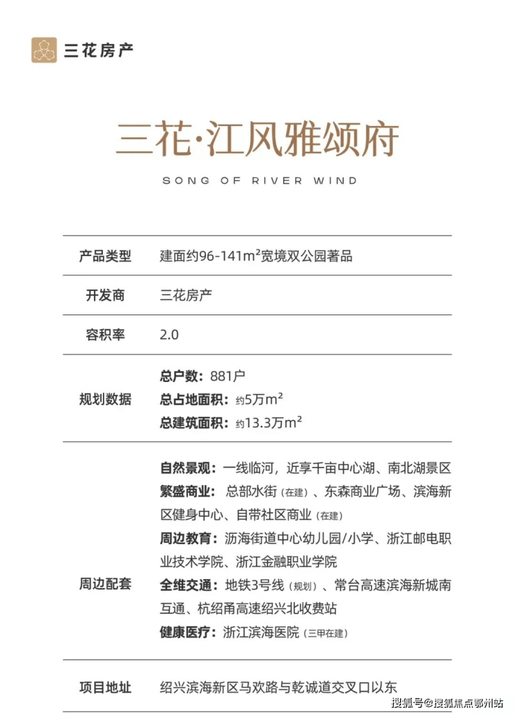 购房政策红利叠加绍兴滨海新区配套加速完善,三花·江风雅颂府以 79万起总价、三花品质、爆款产品,成为新政下“低成本+高品质”的优质选择!