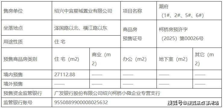 柯桥区人民政府网站公布了 潮府(中交·未来星城)1#、2#、5#、6#的预售许可证。