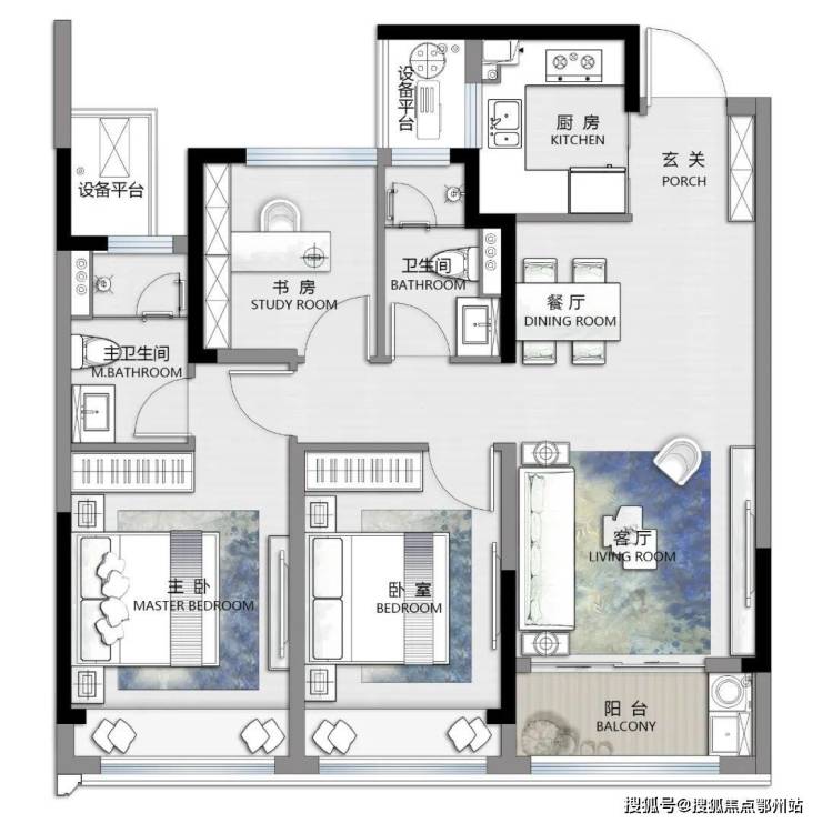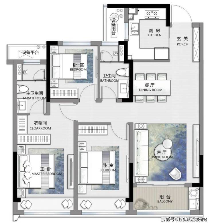 建面约 140 ㎡(东边套)丨四室两厅两卫