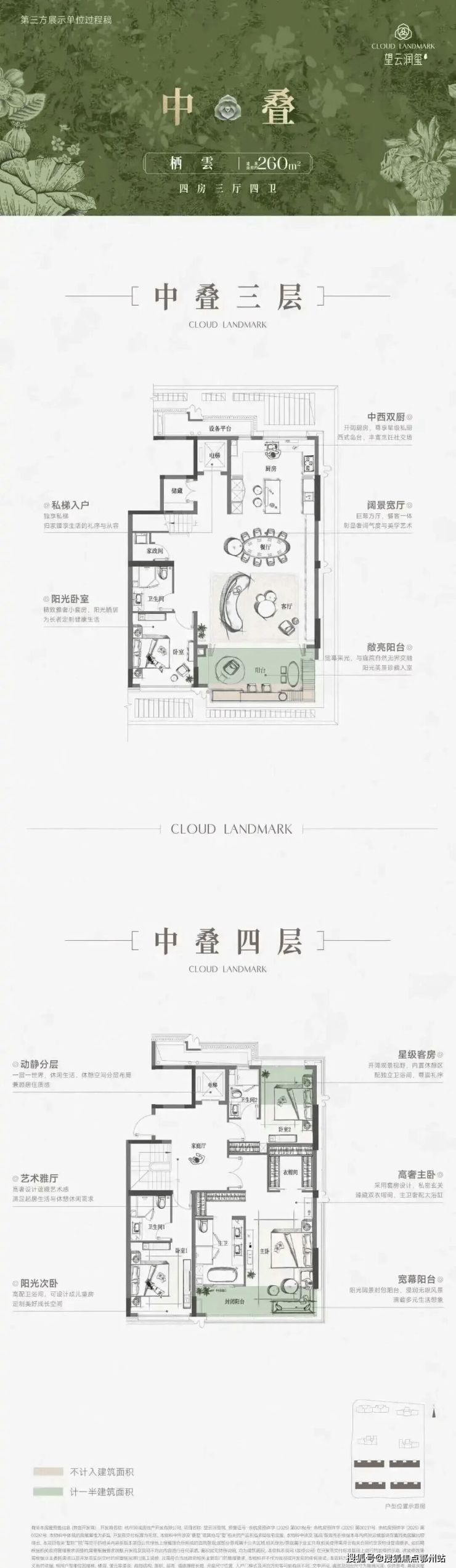 在产品形态上,望云润玺院打出了新玩法,即 建面约260方中叠,不仅也有独立入户庭院,私密感十足,还有一个挑高约6米的地下室,面积约35-40方 ,创新属性拉满,在杭州很少见。