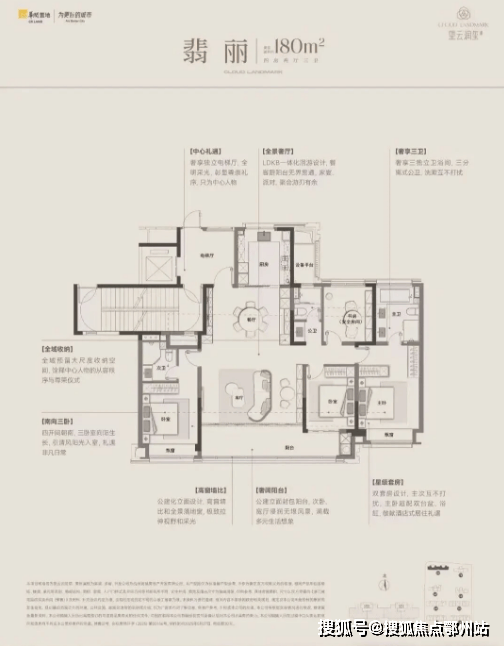 三面全明格局 匠造极致通透之境, 超高窗墙比 ,大面积落地窗,演绎环幕观景视野。 中西双厨环景宽厅 无缝呼应, 户户四套房带卫浴间 ,超出想象。