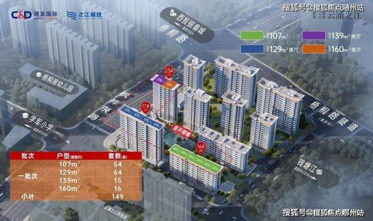 云涌之江两宗地块共规划有 6幢洋房和19幢小高层,首开户型从建面 约107㎡到159㎡。再一次,市场将见识建发的户型创新能力,没有「天花板」。