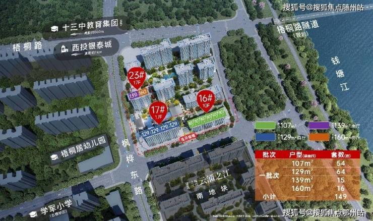 户型建面约107-170平,107平洋房,可做4房;其他户型为纯T2小高,类一梯一户,纯改善四房社区(以实际入市为主)